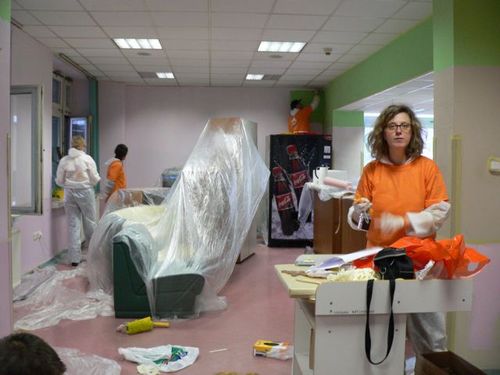 Co ciekawe, w pracach pomagają jej dyrektorzy i pracownicy różnych specjalizacji (bynajmniej nie malarskich:) ING Banku Śląskiego w Katowicach w ramach Programu Wolontariatu Fundacji ING Dzieciom.