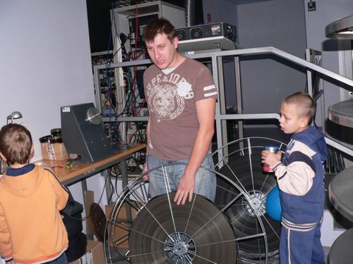W Centrum Sztuki Filmowej najpierw zwiedziliśmy czytelnię i wizualnię, a następnie zorganizowano dla nas warsztaty. Przekonaliśmy się że dźwięki które są wykorzystywane w filmie powstają czasem na najdziwniejszych instrumentach. Pokazano nam także kilka bardzo prostych, domowych sposobów na samodzielne skonstruowanie "trąbek", "bębenków" czy "grzechotek". Ale i tak, najlepsza zabawa była podczas próby udźwiękowienia przez nas jednego odcinka "Reksia". Zostaliśmy podzieleni na role i cała dramaturgia wydarzeń zależała od naszej wyobraźni i refleksu. Na koniec mogliśmy się przekonać ile waży jeden film i ile ma kilometrów, zobaczyć jak się montuje taśmę filmową i zasypać Pana operatora serią pytań dotyczących pracy w kabinie projekcyjnej. Bardzo nam się podobało i bardzo dziękujemy pracownikom CSF za naprawdę ciekawe spotkanie!