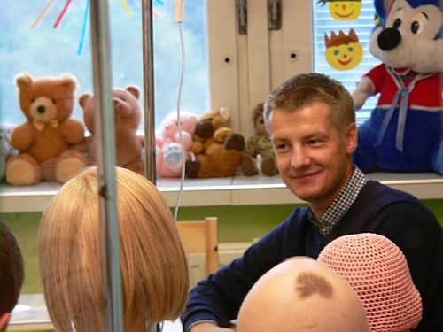 Kolejne pytania dotyczyły programu TVN "Taniec z Gwiazdami", w którym uczestniczył Rafał Mroczek. Oczywiście nasi chłopcy, zainteresowani zdecydowanie innymi stylami tańca, od razu zapytali czy potrafi tańczyć także break dance. Nie dowierzając, że i owszem - poprosili go o zatańczenie kilku figur. I tak, ku zaskoczeniu dzieciaków, Rafał zaczął "wywijać" break'a na szpitalnym korytarzu. Dziewczyny upomniały się także o krótki kurs tańca towarzyskiego (w tym miejscu duże brawa za wdzięk i odwagą dla małej Kasi:) i na kilka chwil oddział onkologiczny zamienił się w salę taneczną.