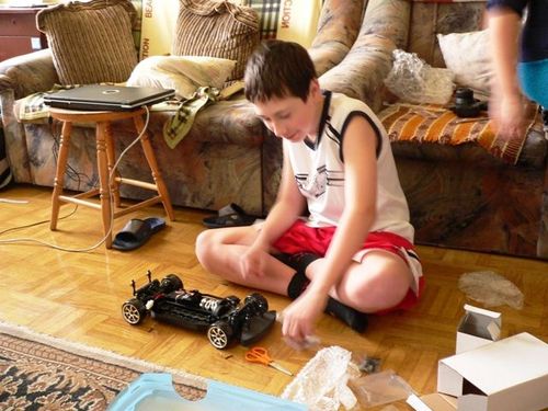 Stwierdził nawet że, nawet na oddziale będzie mógł cieszyć się z prezentu, bo tam są dłuuugie korytarze:) Jako, że generalna zasada modelarstwa RC brzmi: można się w to bawić samemu - ale nic nie zastąpi rywalizacji z innym człowiekiem, życzymy Przemkowi dobrej adrenaliny i sportowego współzawodnictwa, a w przyszłości startu w HPI Challenge!!!