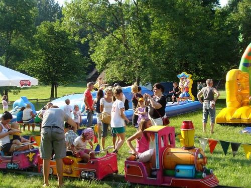 Przygotowaliśmy wiele atrakcji: dmuchańce, skakańce, kolejkę, ściankę wspinaczkową, piknikowe jedzonko i wiele miłych niespodzianek! Była dogoterapia i pokaz tresury psiaków, przejażdżki konne a Pani Klaun na wieeelkich szczudłach wyczarowywała cuda z balonów. Było słonecznie i bardzo gorąco, więc dużym zainteresowaniem cieszyła się lodówka pełna lodów.