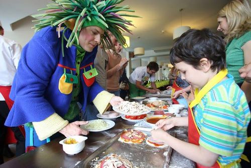 Trochę nabałaganiliśmy, ale zabawa była przednia! W restauracji Hotelu Spa&Wellness Diament w Ustroniu , podczas jednego z obozów w ramach AKCJI LATO 2013 nasi podopieczni wraz z DOMISIAMI robili pizzę i szykowali pyszne desery. Wszystko odbyło się pod czujnym okiem szefa kuchni oraz aktorskiej pary Tomasza i Urszuli Błasiaków, czyli bajkowego Bazylego i Czarodziei, którzy poprowadzili warsztaty kulinarne. Były pizze kwadratowe, owalne i serduchowe - fantazja dzieci w tym zakresie nie miała granic.