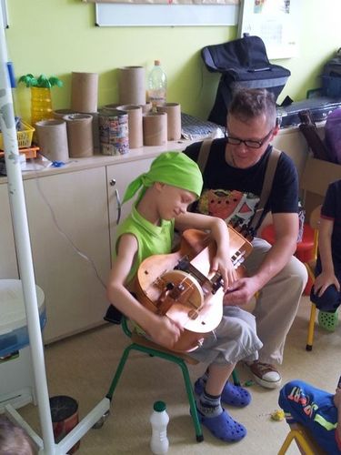 Z racji tego, że zawsze do tematu podchodzimy w sposób nie banalny i tym razem nie mogło być inaczej. Nasi oddziałowi artyści najpierw mieli za zadanie stworzyć własne instrumenty i to nie z byle czego /a może właśnie z byle czego:) Nasz wyjątkowy gość TOMASZ DROZDEK pokazał uczestnikom nie tylko jak z prostych produktów, które można znaleźć w każdym domu oraz sterty śmieci stworzyć pięknie grające niepowtarzalne instrumenty, ale także uraczył nas grą na swojej niespotykanej nigdzie kolekcji instrumentów nietypowych.