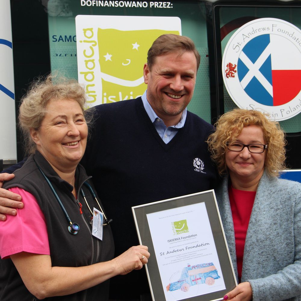 110 tyś przekazała na ten cel ISKIERKA, dzięki współpracy z St. Andrews Foundation Scots in Poland , promującej szkocką kulturę i wspierającej działalność dobroczynną w Polsce . Większą część środków na ten cel (80 tyś.) udało się zebrać podczas aukcji charytatywnej zorganizowanej w ubiegłym roku w Warszawie i hojności właśnie Szkotów mieszkających w Polsce. ISKIERKA dołożyła dodatkowo 30 tyś. uzyskanych z 1% podatku.