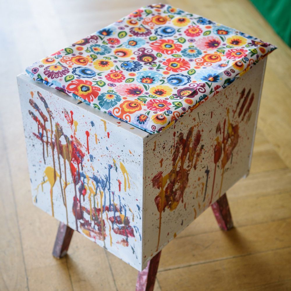 Spotkaliśmy się z młodzieżą, opowiedzieliśmy o działaniach naszej fundacji i przypatrywaliśmy się pracy twórczej. W efekcie powstały nietuzinkowe meble, które można wylicytować na charytatywnym Allegro . Dochód ze sprzedaży przekazany zostanie na realizację warsztatów arteterapeutycznych na oddziałach onkologii dziecięcej. W ten sposób rozwijamy zdolności artystyczne dzieci, oswajamy szpitalną rzeczywistość, pomagamy pokonać poczucie izolacji oraz stres towarzyszący chorobie.