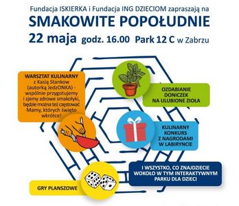 Zapraszamy podopiecznych Fundacji ISKIERKA wraz z rodzinami na Smakowite Popołudnie, które odbędzie się w Parku 12 C w Zabrzu (ul.Sienkiewicza 43, wjazd od ulicy Mochnackiego).