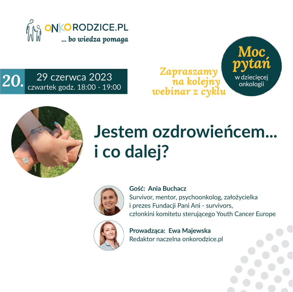 29 czerwca odbył się webinar Jestem ozdrowieńcem… i co dalej? z udziałem Ani Buchacz - survivor, mentorki, psychoonkolożki, założycielki i prezeski Fundacji Pani Ani, członkini komitetu sterującego Youth Cancer Europe.