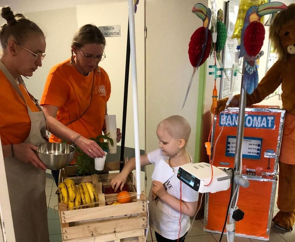I tak właśnie, przy naszym drobnym wsparciu, zorganizowali zabawę, połączoną z wątkiem edukacyjnym. Nasi podopieczni korzystali z zabawkowych bankomatów, by następnie za otrzymane pieniądze dokonać zakupów na bazarku, które później posłużyły do wyczarowania pyszności podczas warsztatów z Kasią Stankow, naszą wspaniałą onkomamą i autorką serii "jedzONKO". Na dzieci tego dnia czekały też fantastyczne misie przekazane przez Galerię Bukowski.