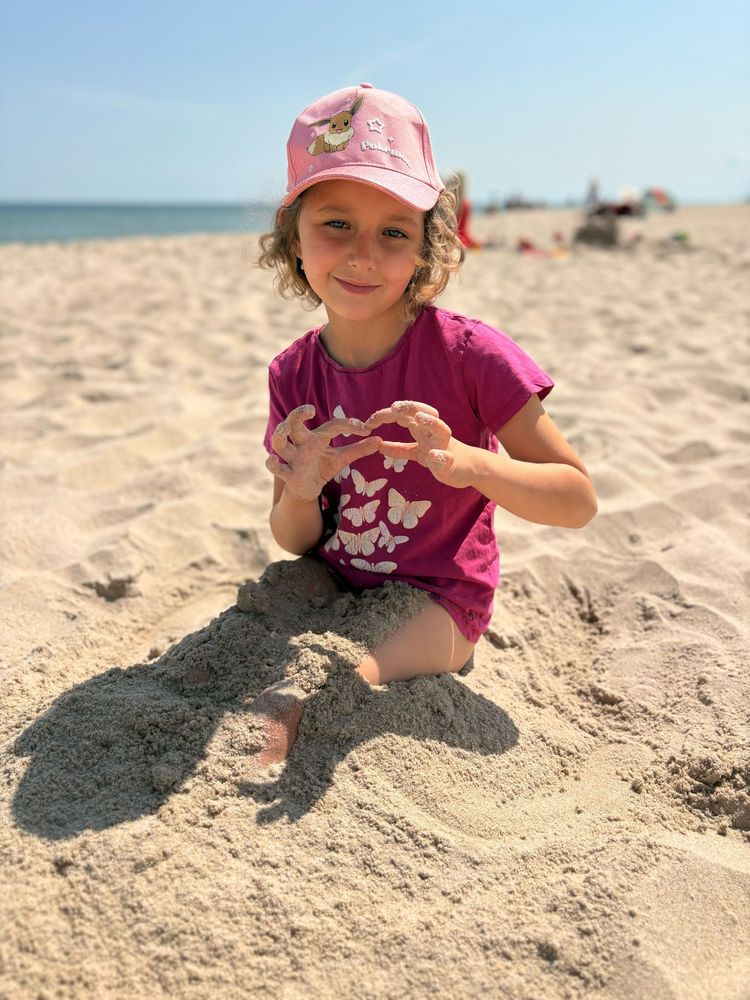 Następnego dnia rano obudziło nas ciepłe słoneczko, więc długo się nie zastanawiając zjedliśmy śniadanie i ruszyliśmy na piękną plażę. Przecież musieliśmy zakopać się w piachu po szyję, wykąpać w lodowatej wodzie i zrobić ‚panierkę’ czyli obtoczyć mokre ciałka w piasku, puszczać latawce i wygrzewać się na słońcu!