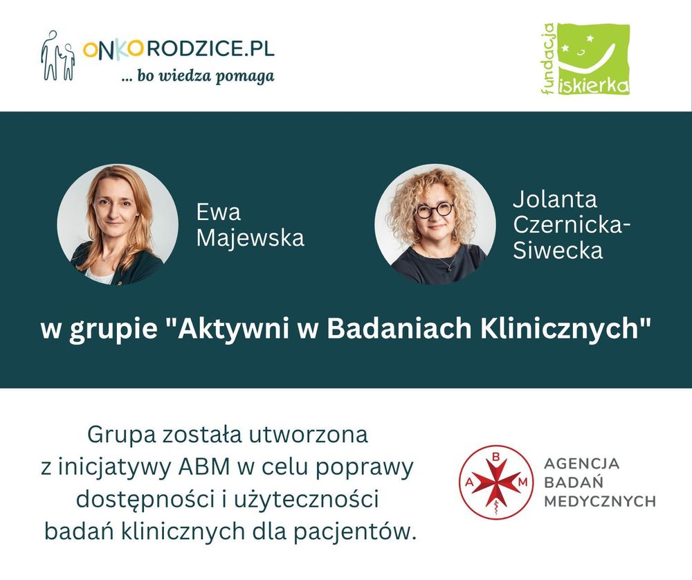 Jolanta Czernicka-Siwecka, prezeska Fundacja ISKIERKA oraz Ewa Majewska, redaktorka naczelna portalu Portal Onkorodzice.pl zostały zaproszone do Grupy „Aktywni w Badaniach Klinicznych”(AwBK) utworzonej w 2025 roku z inicjatywy Agencji Badań Medycznych (ABM).