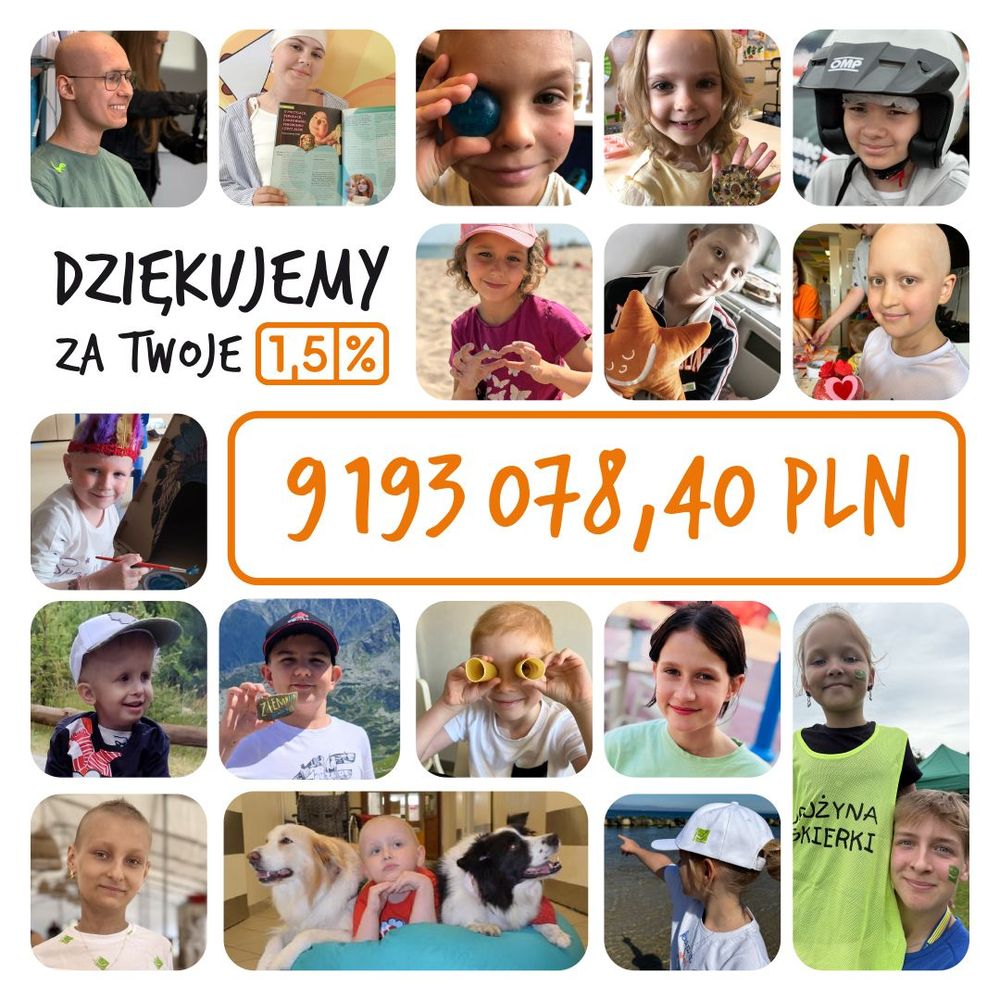 9 193 078,40 zł to kwota, dzięki której będziemy mogli nieść wsparcie finansowe, psychologiczne, społeczne, terapeutyczne, rehabilitacyjne, integracyjne i nadal być blisko dzieci z chorobą nowotworową ich rodzin.