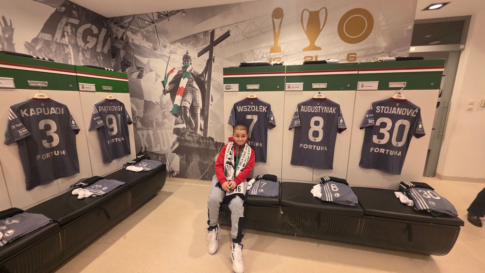 Dzięki ogromnej uprzejmości Legii, nie tylko zwiedził obiekt, spotkał się z zawodnikami, ale także zasiadł na trybunach w loży VIP podczas meczu i otrzymał klubowe gadżety, które z dumą zabrał do domu.