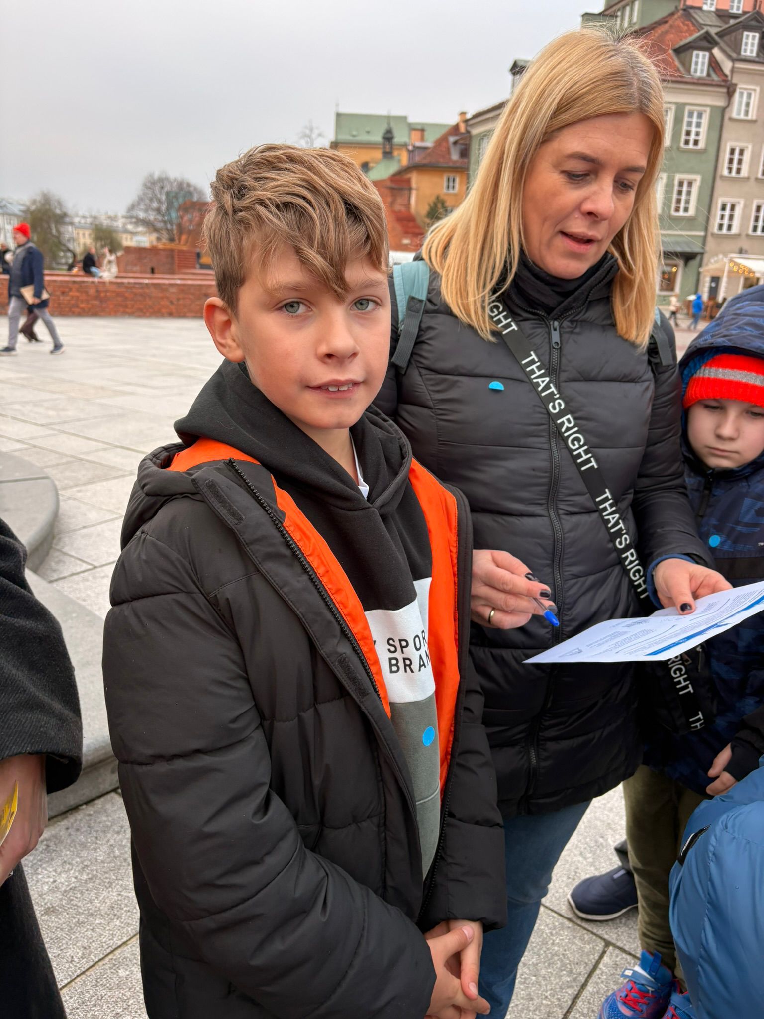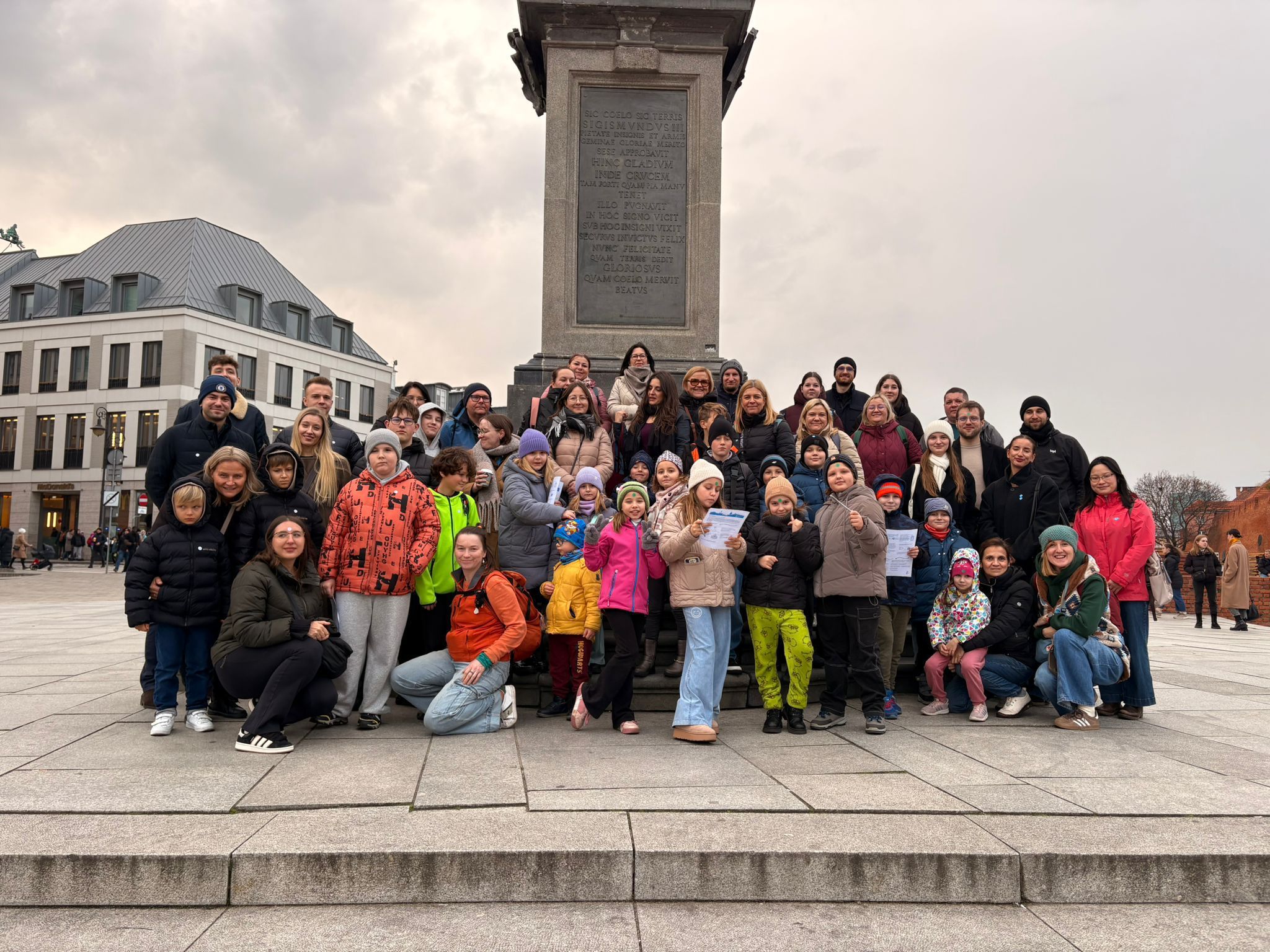 „W piątkowe przedpołudnie pełni entuzjazmu dotarliśmy do stolicy. Już na samym początku czekała nas miła niespodzianka - zakwaterowano nas w luksusowym hotelu, gdzie dzieci przywitały… przytulaśne prezenty! Miękkie, kolorowe maskotki od razu wywołały szerokie uśmiechy i wprowadziły wszystkich w wyjątkowy, magiczny nastrój. Po pysznym obiadku wyruszyliśmy na grę miejską, dzięki której odkrywaliśmy zakamarki warszawskiej Starówki.