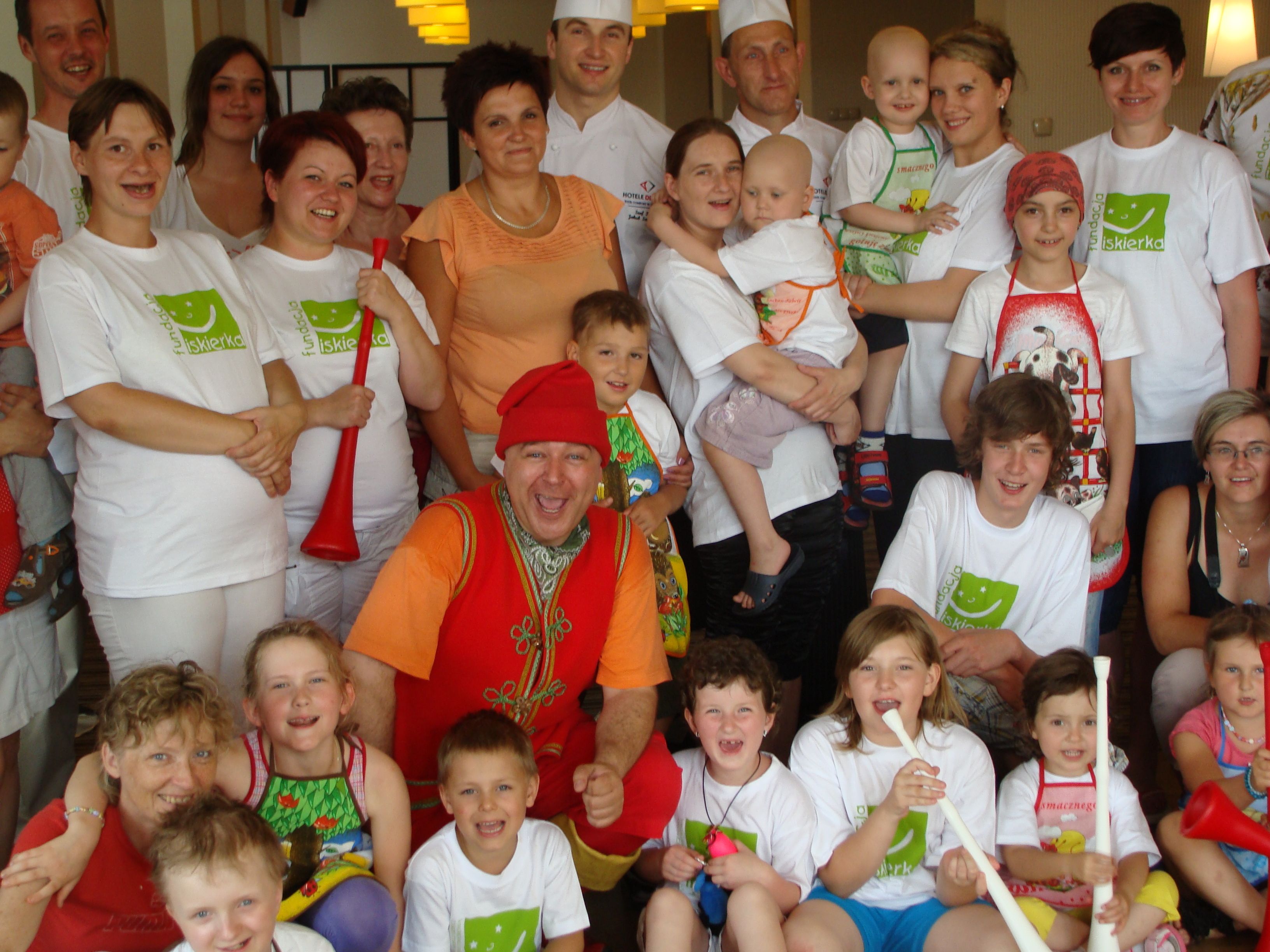 Zaczęliśmy więc edukację żywieniową i wspólne gotowanie. Na początek warsztaty robienia sushi – tak, by ciekawość zwyciężyła wszelkie opory. Od 2012 roku każdy nasz obóz w malowniczym Ustroniu łączyliśmy z warsztatami kulinarnymi. Zapraszaliśmy znane postaci z programów telewizyjnych, bajek oraz cenionych kucharzy. Krasnala Piksela z programu „Budzik” czy sympatyczne Domisie (TVP1). W ten sposób poznaliśmy także Jarosława Boberka, który dał się namówić – a właściwie Król Julian, którego spektakularnie dubbingował – na wspólne kulanie klusek śląskich. Do wspólnego gotowania z ISKIERKAMI dołączali również Mistrz Świata Cukiernictwa Michał Doroszkiewicz oraz kucharze tacy jak Marcin Czubak czy Ania Starmach.